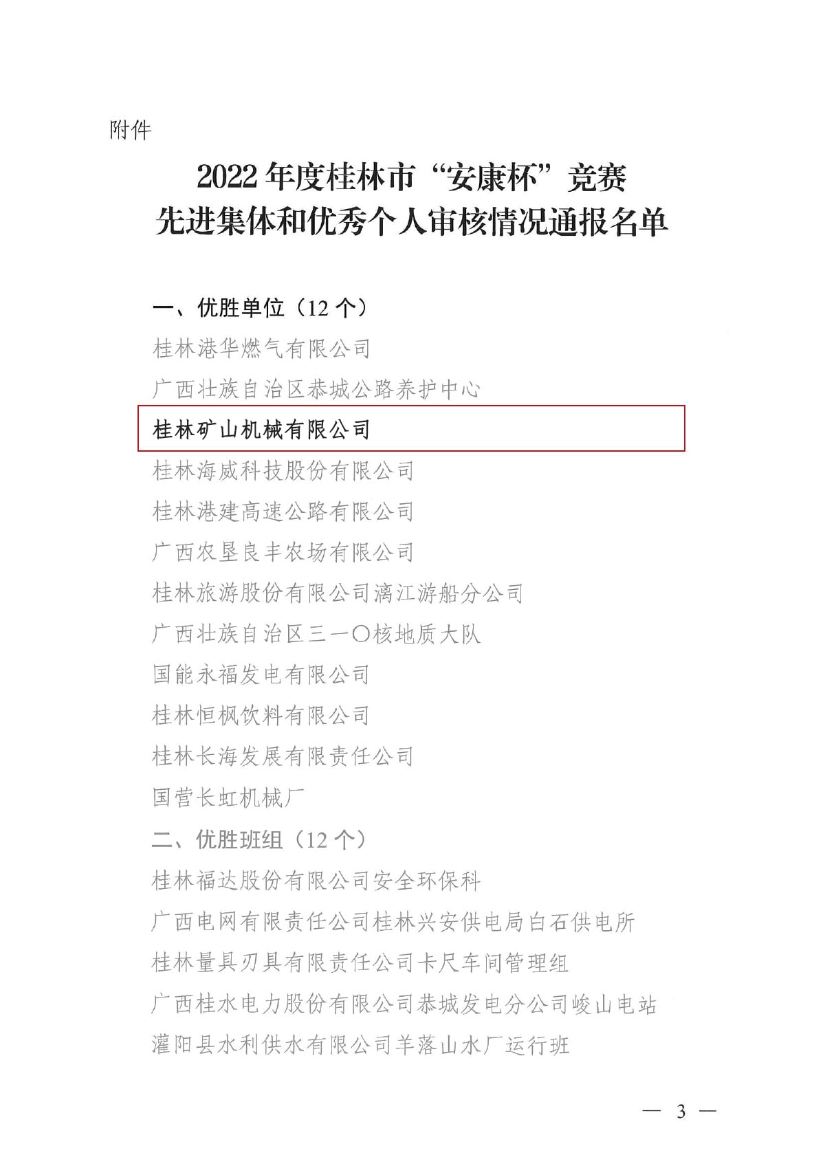 喜報!桂林礦機榮獲桂林市“安康杯”競賽先進集體