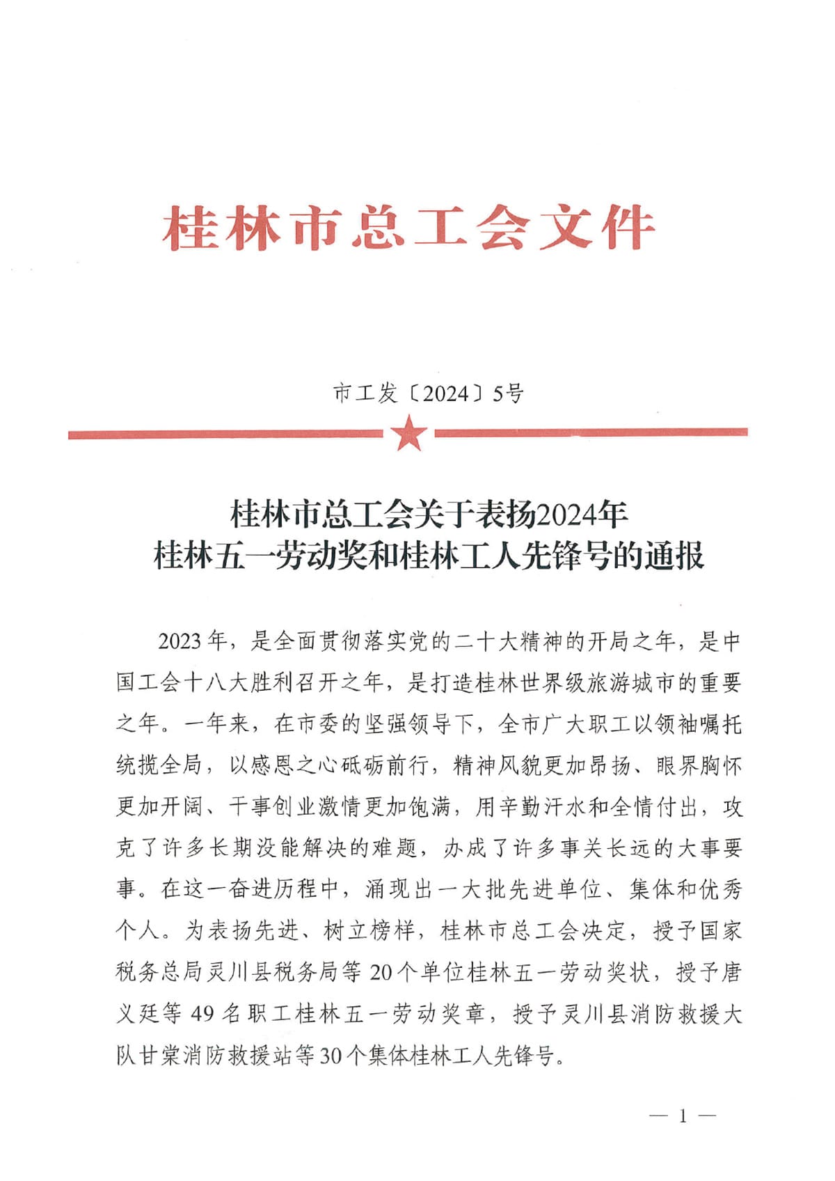 為表?yè)P(yáng)先進(jìn)、樹(shù)立榜樣。近日,桂林市總工會(huì)發(fā)文關(guān)于表?yè)P(yáng)2024年桂林五一勞動(dòng)獎(jiǎng)和桂林工人先鋒號(hào)的通報(bào),決定授予唐義廷等49名職工桂林五一勞動(dòng)獎(jiǎng)?wù)隆?